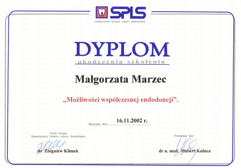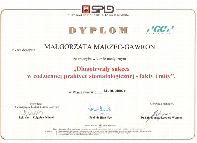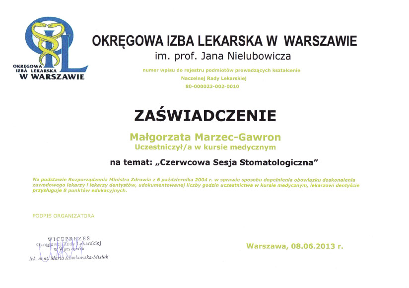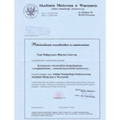 07.10.2004 Zakład Stomatologii Zachowawczej AM w Warszawie, kierownik naukowy dr. hab. n. med. Elżbieta Jodkowska .