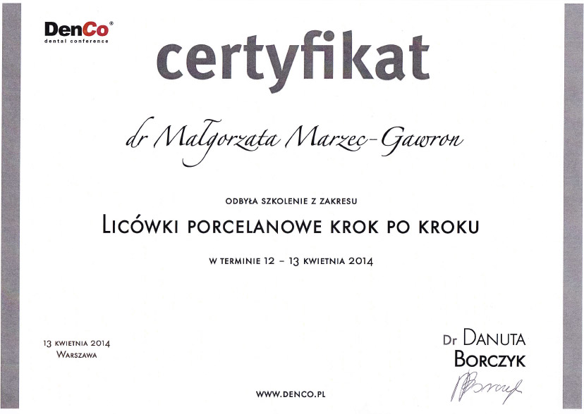 12-13 kwietnia 2014, DenCo dr.Danuta Borczyk